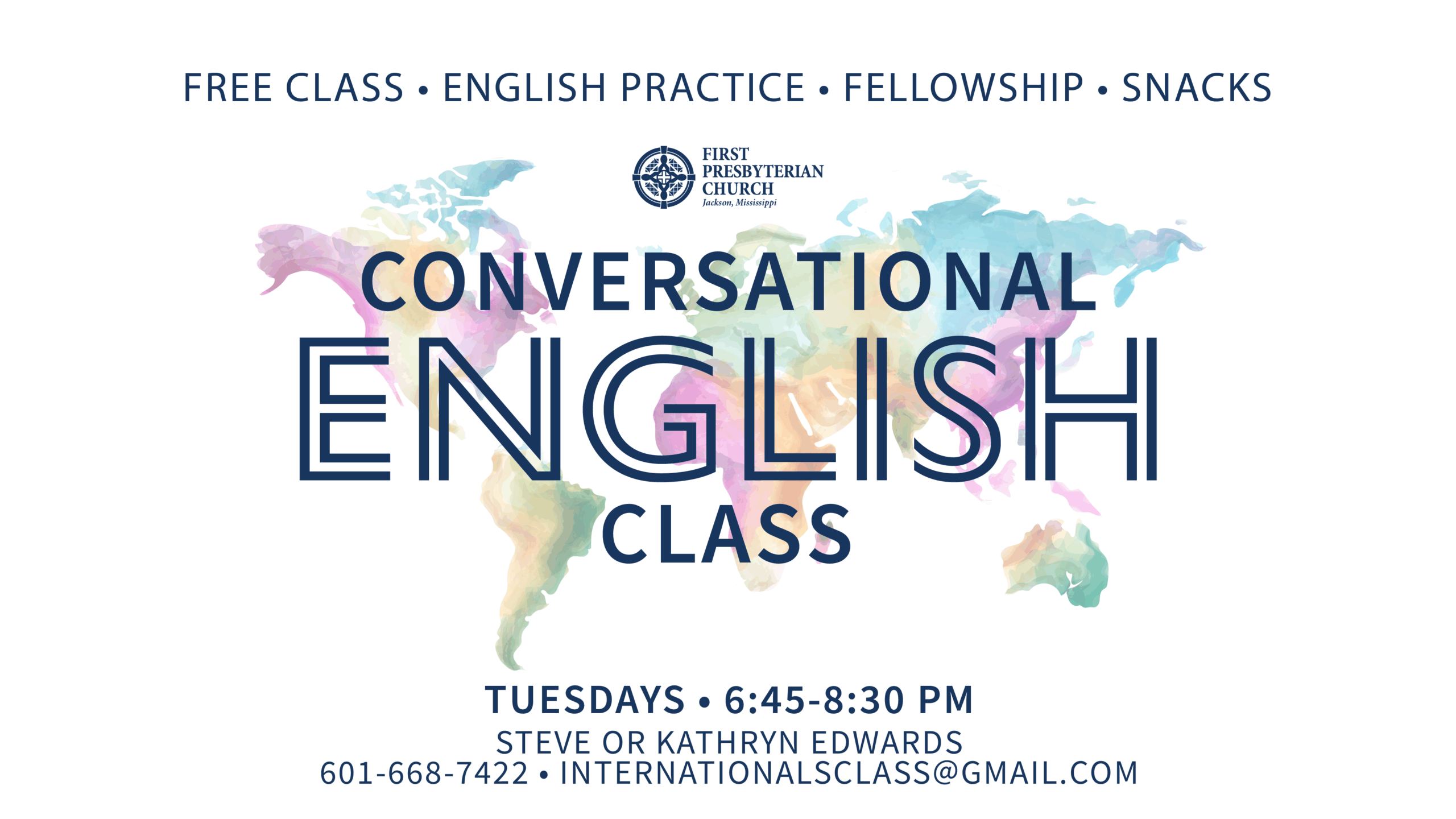Meets Tuesdays at 6:45-8 p.m. on the FPC Campus - Patterson Hall or Via Zoom FPC Team Leader: Steve Edwards 601-668-7422 - alice5176@aol.com Without leaving Jackson (or your home if you'd like to Zoom) you can answer God’s calling to love our international neighbors by helping them with their English. By the power of Holy Read more...