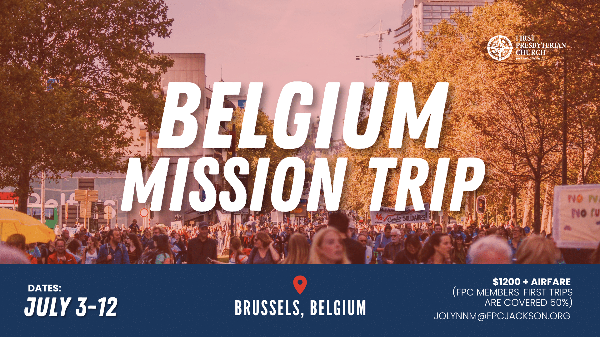 Brussels, Belgium July 3 - 12, 2025 Team of 6 led by Alan Walters - VBS Cost - $1200 + airfare