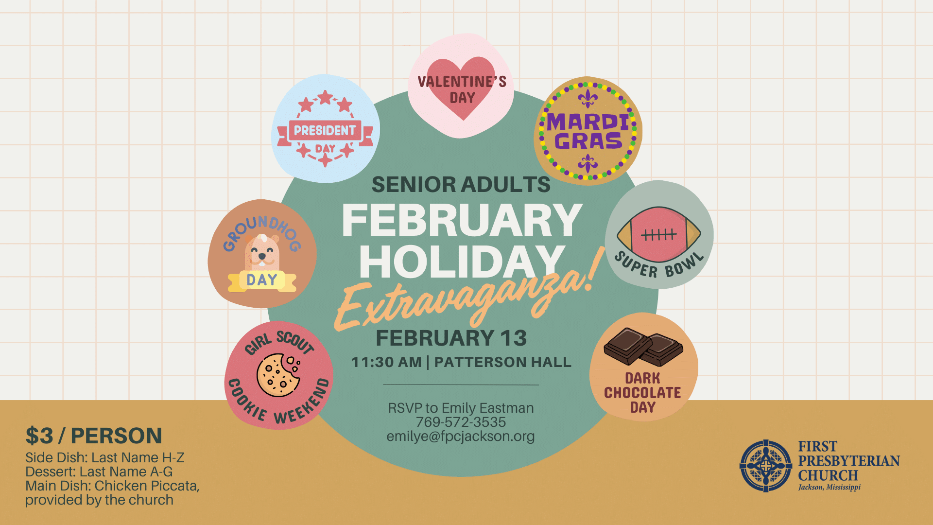 Senior Adults, join us for food, fellowship, and fun on February 13, at 12:00 p.m. in Patterson Hall, at our February Holidays Extravaganza. We couldn't choose just one holiday, so Read more...