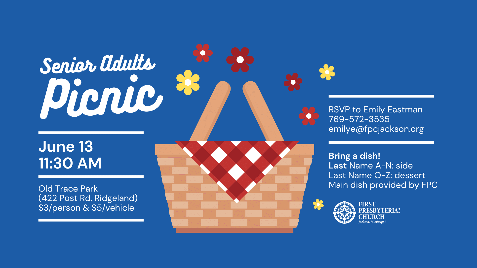 Join us for an afternoon of food, fellowship, and fun on June 13, at 11:30 a.m. at Old Trace Park in Ridgeland (422 Post Rd, Ridgeland, MS 39157). We will start off with a lunch followed by a short program. The cost of the event is $3 per person plus $5 for parking per vehicle. Read more...