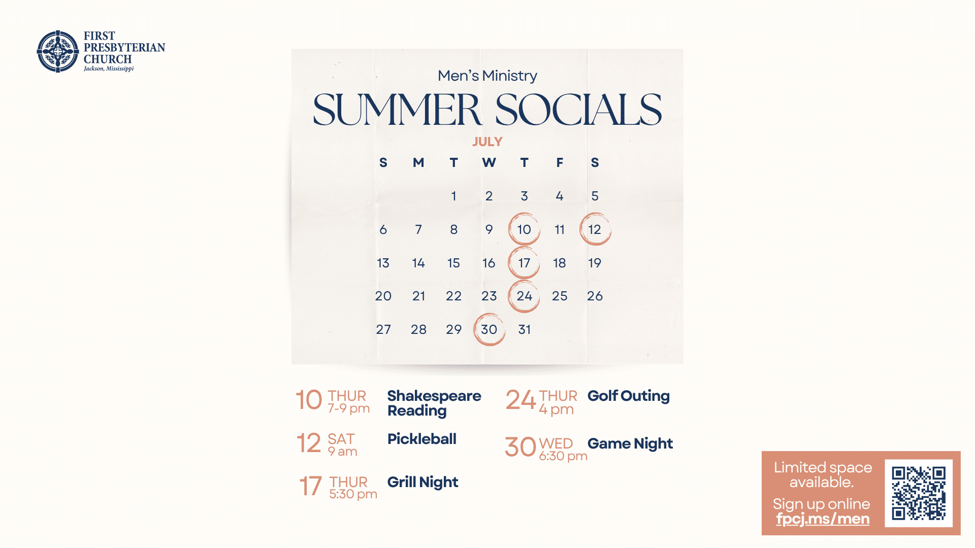 Men, gather with smaller groups from our church family this summer at these more relaxed activities and social events. Get to know new friends & connect with old ones, across age and stage. Choose one of our summer socials and get connected with Men's Ministry! After you sign up, you will be contacted by the Read more...