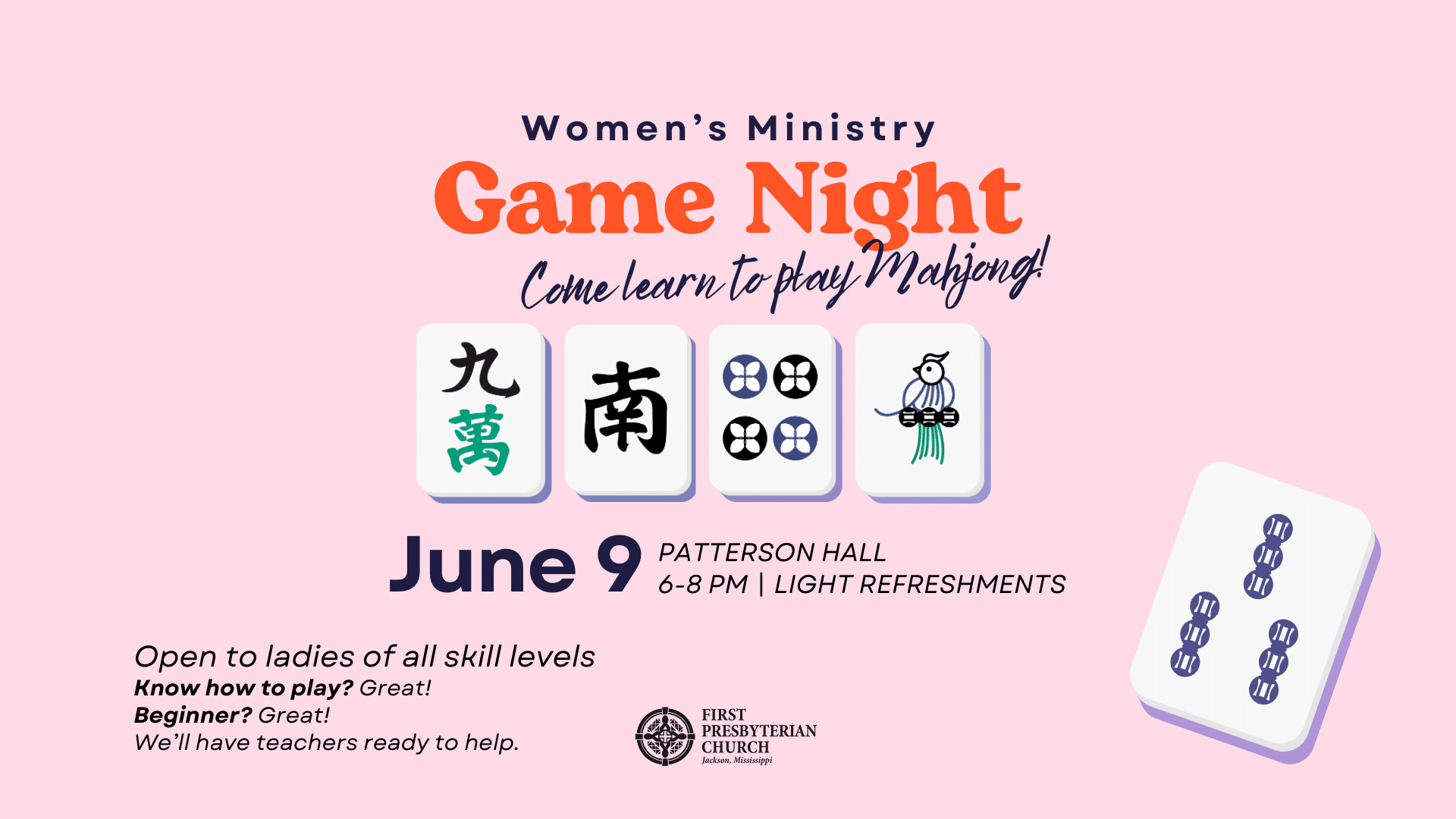 Get together with friends new and old and share a meal together! Text Rose to sign up at 601-850-6697, and we will follow up with more information.