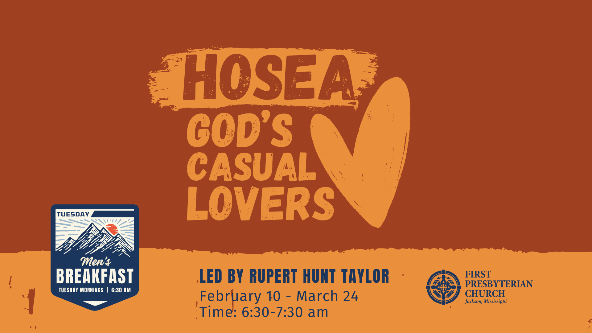 Men, our Breakfast Series is back on Tuesdays at 6:30 a.m. This semester our topic is Hosea: God's Casual Lovers. Hosea tells an unsettling love story of a holy husband Read more...