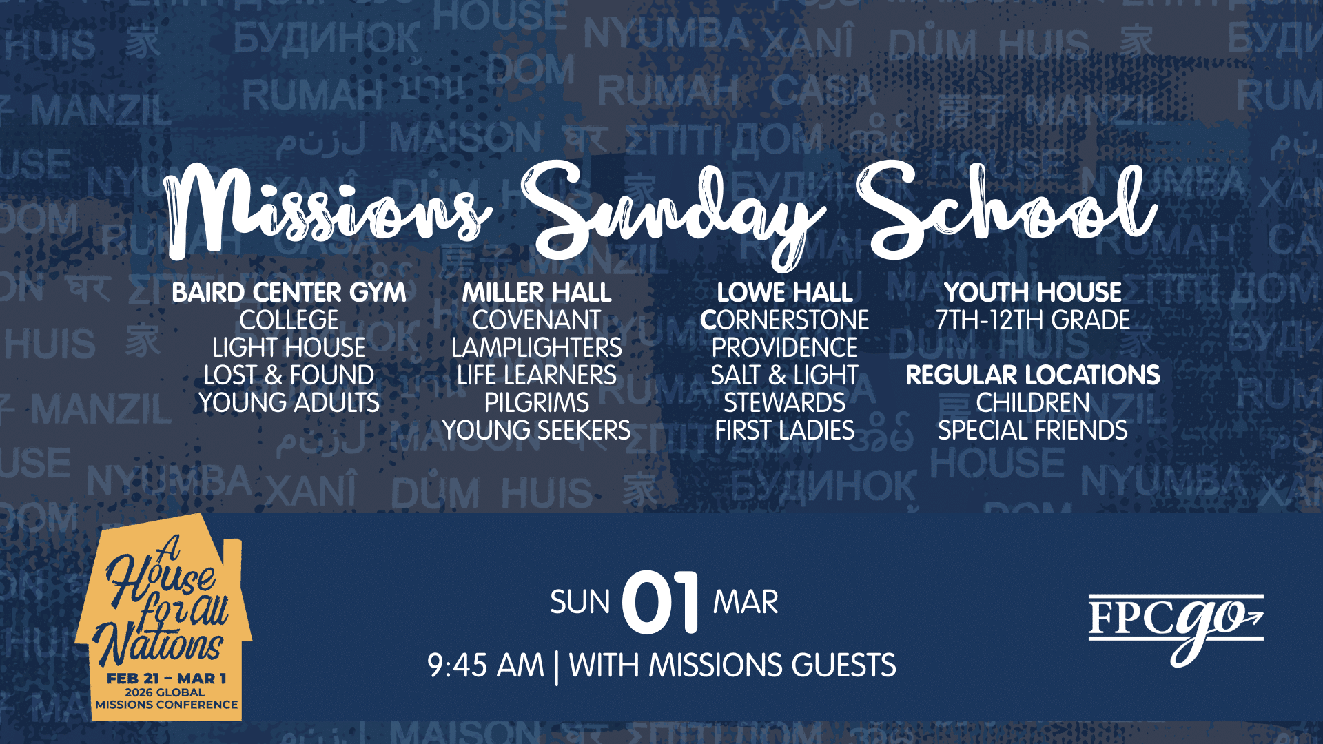 Come hear from our missions guests, Sunday, March 1, at 9:45 a.m. in the following locations: Baird Center Gym College Light House Lost & Found Young Adults Miller Hall Covenant Read more...