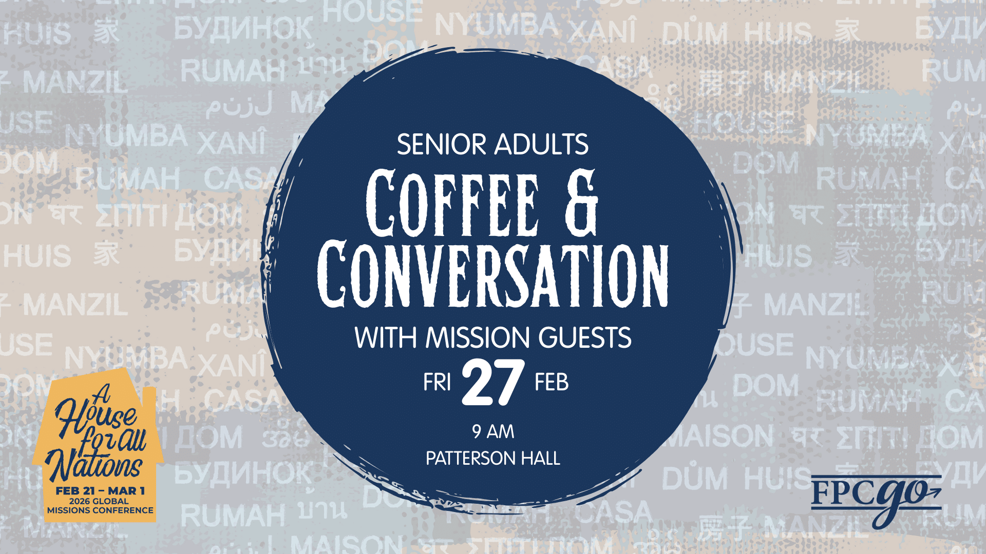 Join us for Senior Adults Coffee & Conversation, a special gathering as part of our Global Missions Conference. On Friday, February 27, at 9 a.m. in Patterson Hall, senior adults Read more...